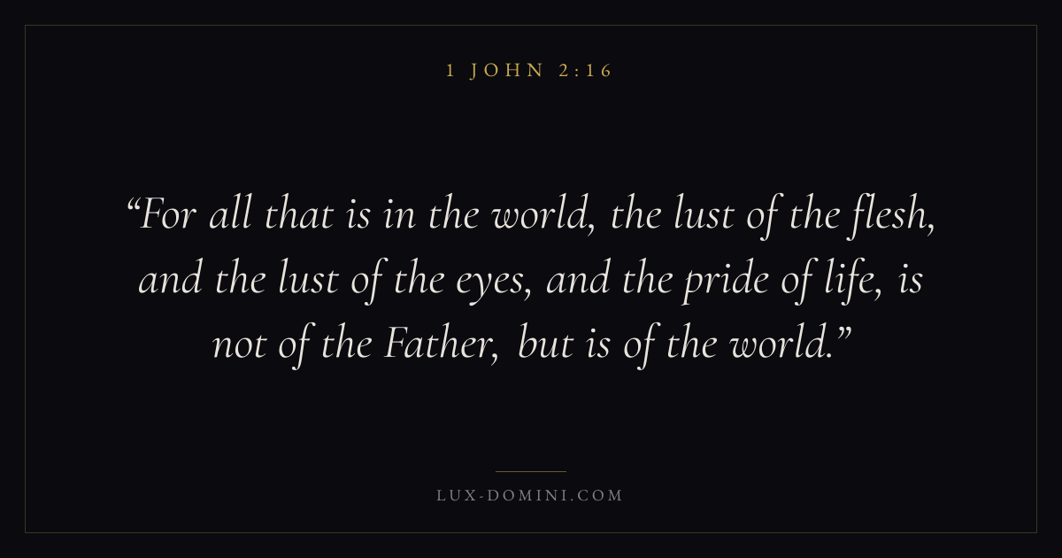For all that is in the world, the lust of the flesh, and the lust of the eyes, and the pride of life, is not of the Father, but is of the world.