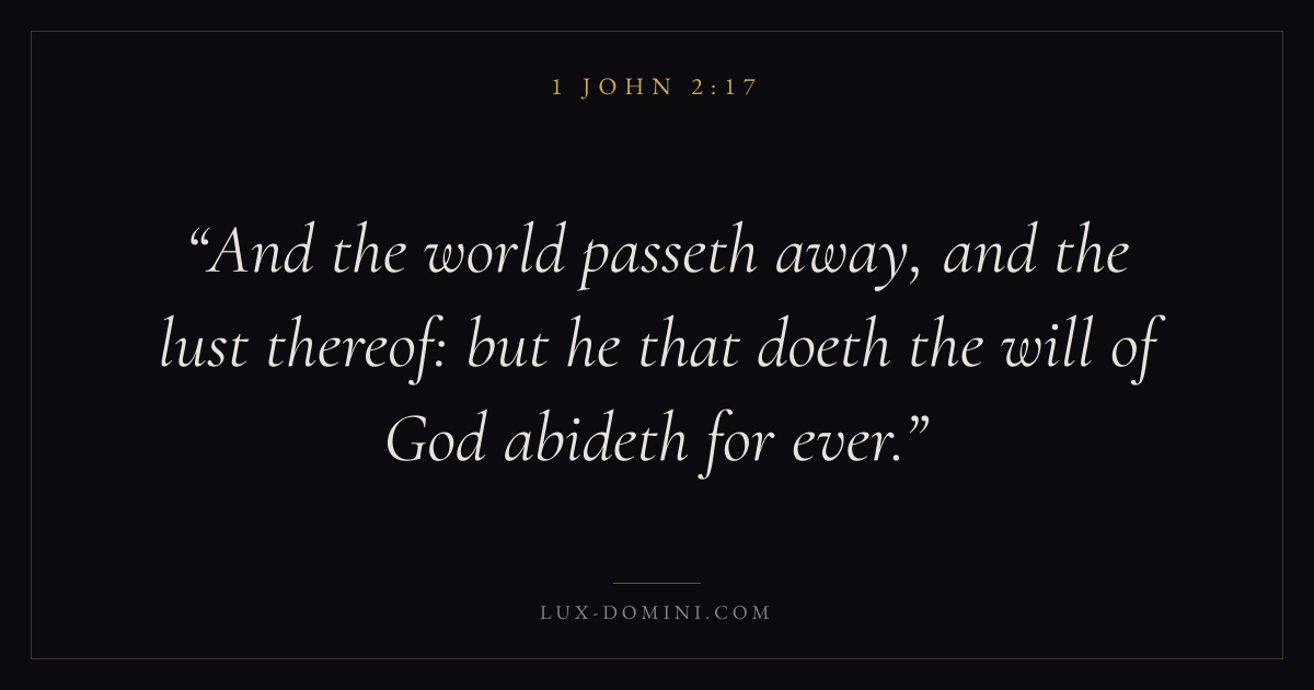 And the world passeth away, and the lust thereof: but he that doeth the will of God abideth for ever.