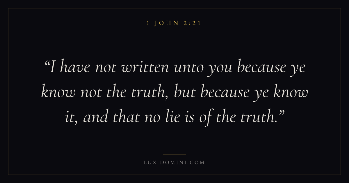 I have not written unto you because ye know not the truth, but because ye know it, and that no lie is of the truth.