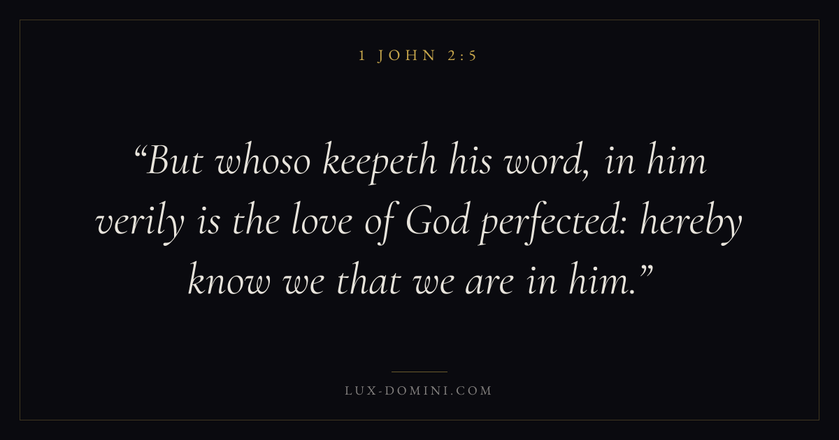 But whoso keepeth his word, in him verily is the love of God perfected: hereby know we that we are in him.