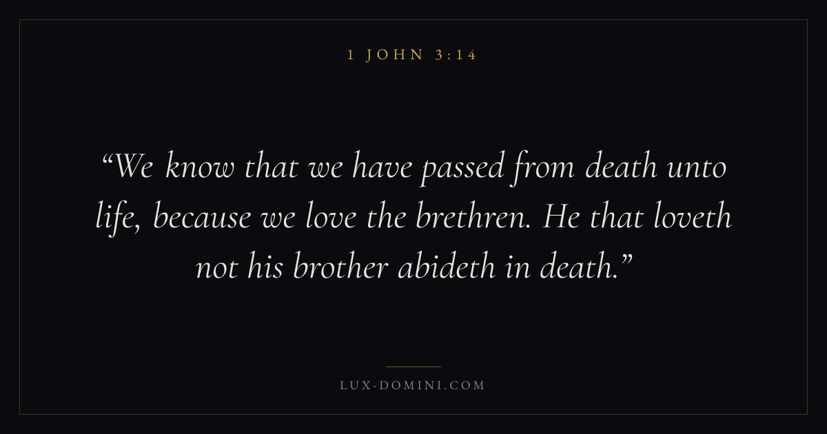 We know that we have passed from death unto life, because we love the brethren. He that loveth not his brother abideth in death.