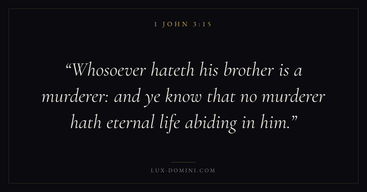 Whosoever hateth his brother is a murderer: and ye know that no murderer hath eternal life abiding in him.