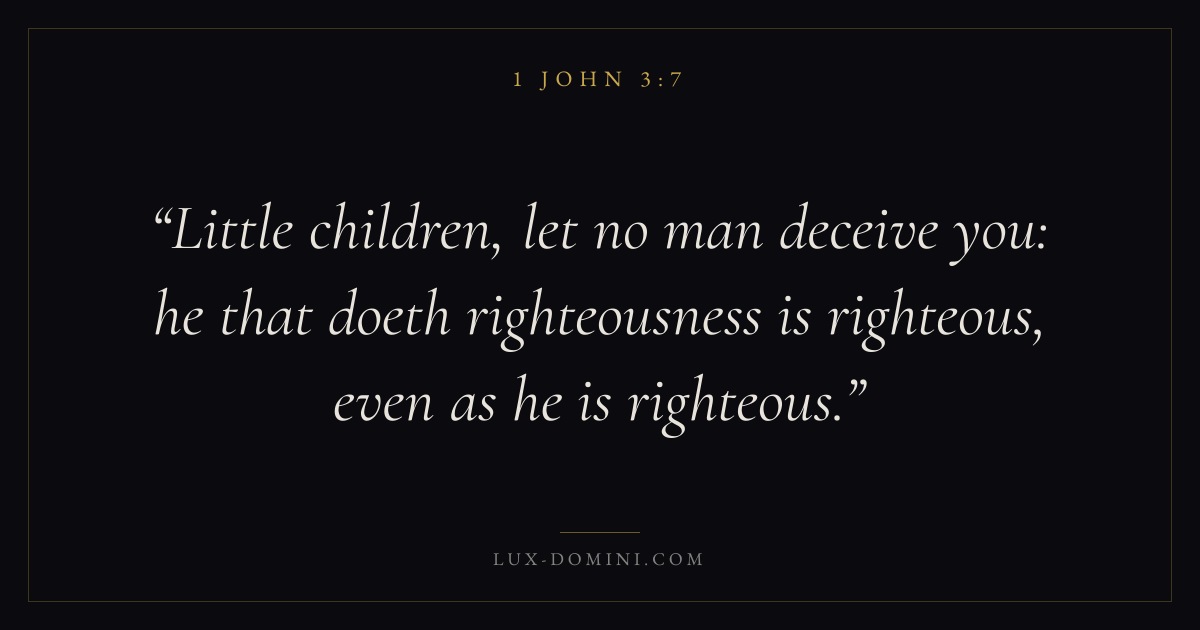Little children, let no man deceive you: he that doeth righteousness is righteous, even as he is righteous.