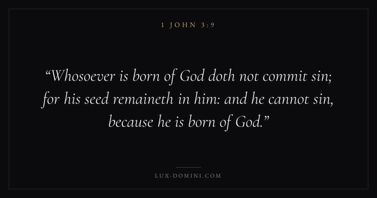 Whosoever is born of God doth not commit sin; for his seed remaineth in him: and he cannot sin, because he is born of God.