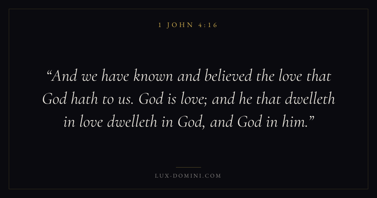 And we have known and believed the love that God hath to us. God is love; and he that dwelleth in love dwelleth in God, and God in him.