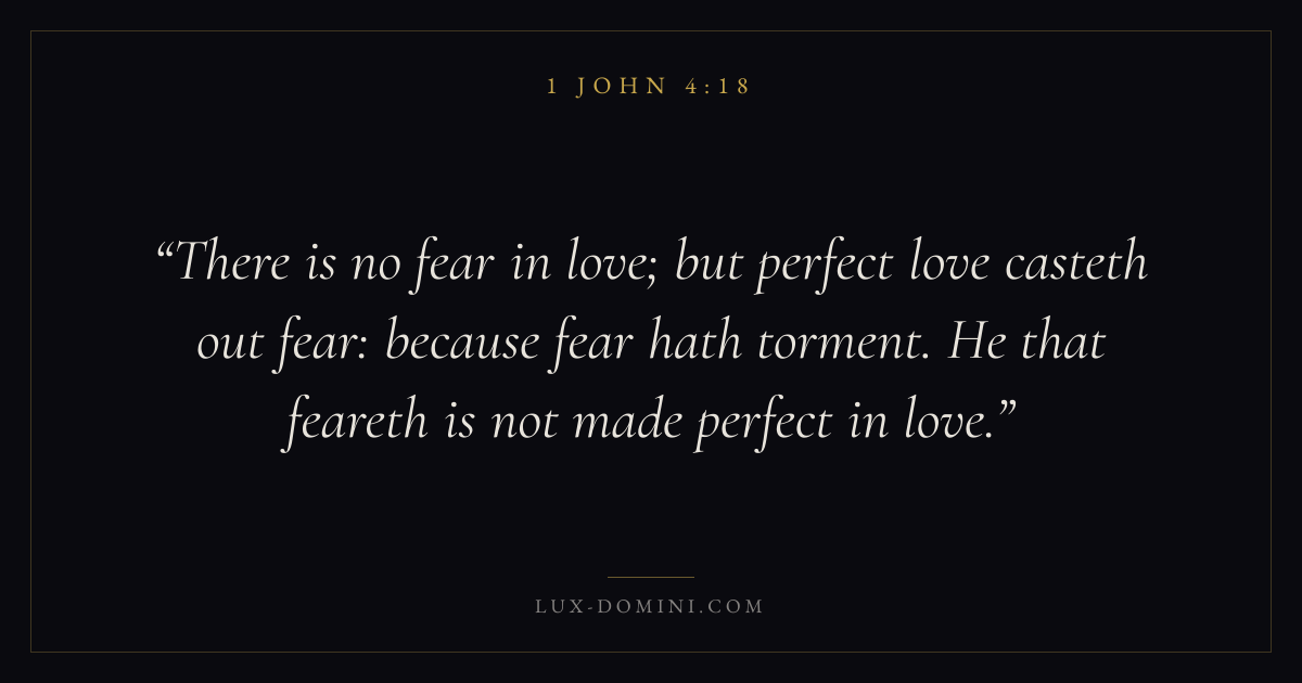 There is no fear in love; but perfect love casteth out fear: because fear hath torment. He that feareth is not made perfect in love.