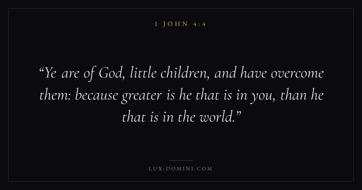 Ye are of God, little children, and have overcome them: because greater is he that is in you, than he that is in the world.