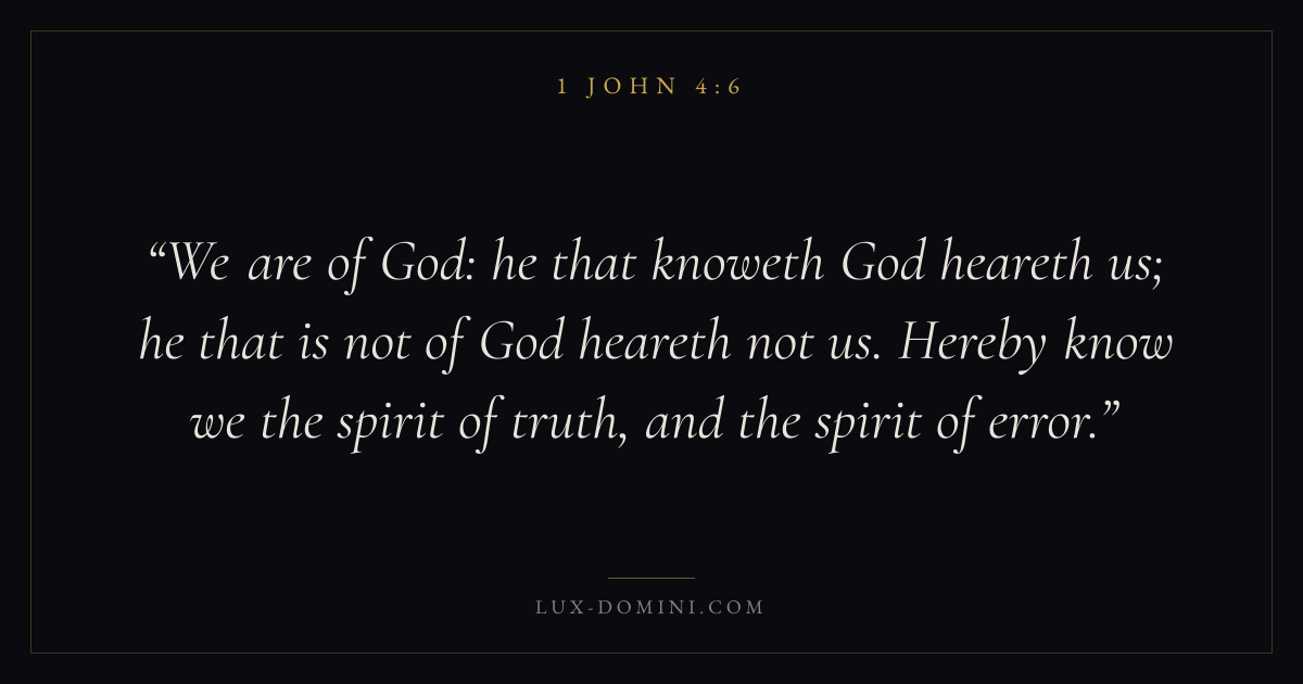 We are of God: he that knoweth God heareth us; he that is not of God heareth not us. Hereby know we the spirit of truth, and the spirit of error.
