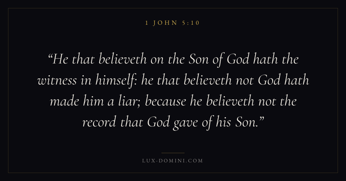 He that believeth on the Son of God hath the witness in himself: he that believeth not God hath made him a liar; because he believeth not the record that God gave of his Son.