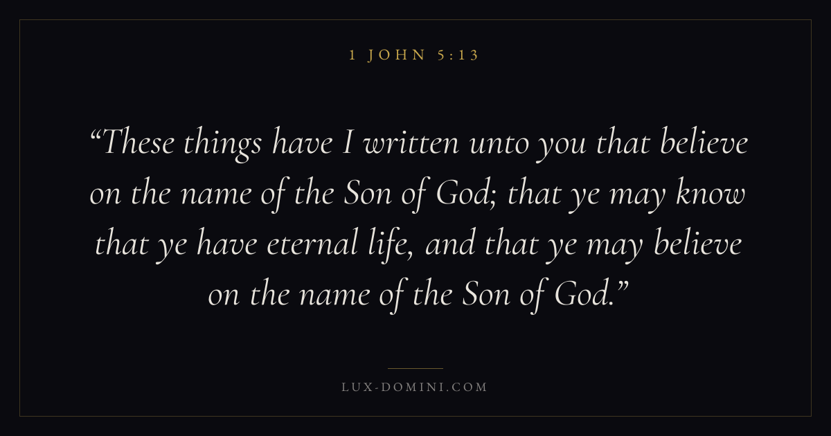 These things have I written unto you that believe on the name of the Son of God; that ye may know that ye have eternal life, and that ye may believe on the name of the Son of God.