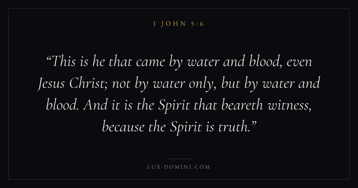 This is he that came by water and blood, even Jesus Christ; not by water only, but by water and blood. And it is the Spirit that beareth witness, because the Spirit is truth.
