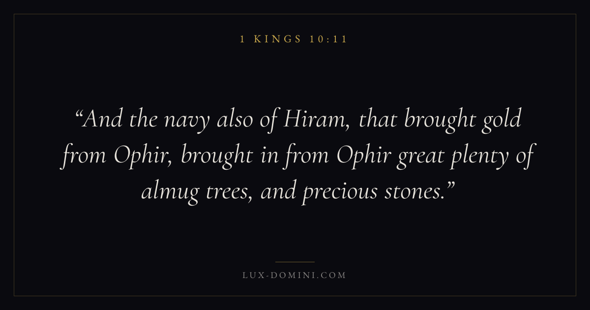 And the navy also of Hiram, that brought gold from Ophir, brought in from Ophir great plenty of almug trees, and precious stones.
