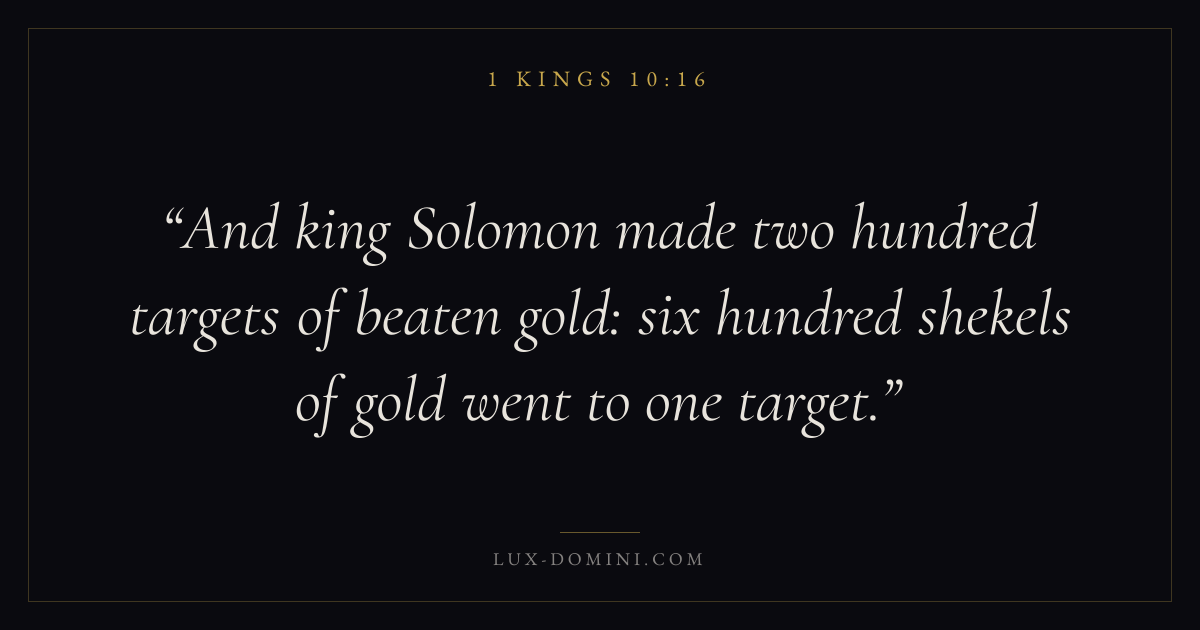 And king Solomon made two hundred targets of beaten gold: six hundred shekels of gold went to one target.