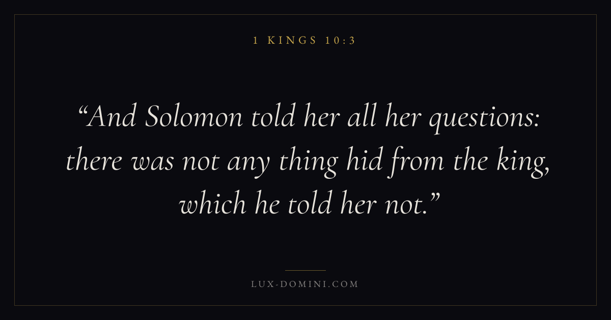 And Solomon told her all her questions: there was not any thing hid from the king, which he told her not.