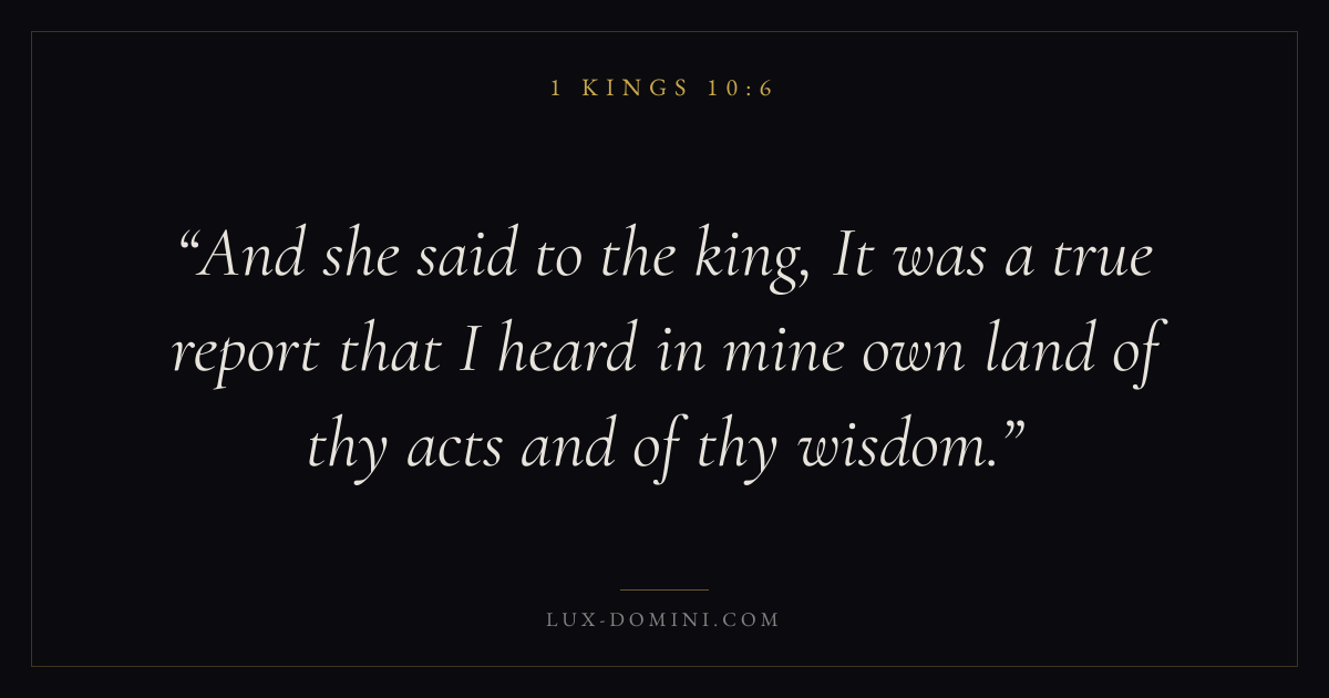 And she said to the king, It was a true report that I heard in mine own land of thy acts and of thy wisdom.