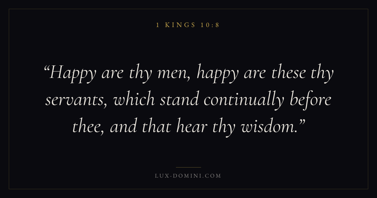 Happy are thy men, happy are these thy servants, which stand continually before thee, and that hear thy wisdom.