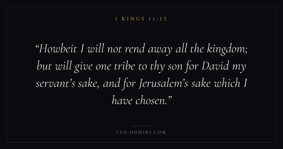 Howbeit I will not rend away all the kingdom; but will give one tribe to thy son for David my servant’s sake, and for Jerusalem’s sake which I have chosen.