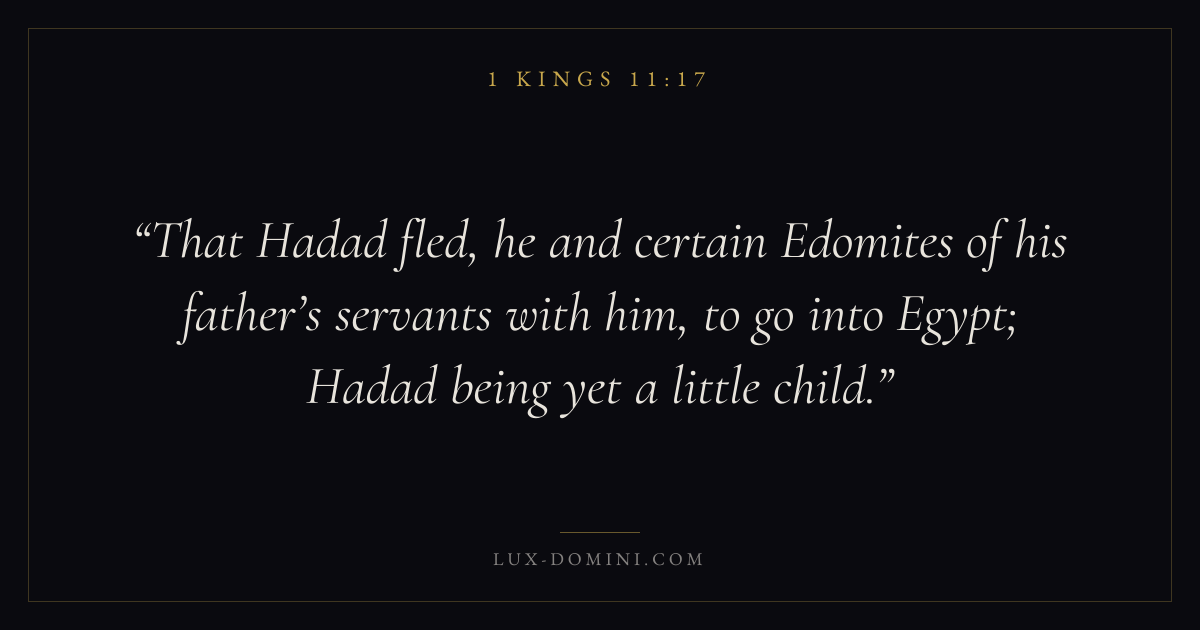 That Hadad fled, he and certain Edomites of his father’s servants with him, to go into Egypt; Hadad being yet a little child.