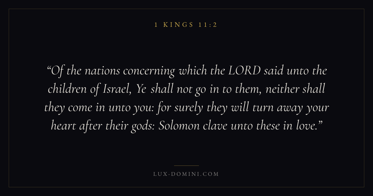Of the nations concerning which the LORD said unto the children of Israel, Ye shall not go in to them, neither shall they come in unto you: for surely they will turn away your heart after their gods: Solomon clave unto these in love.