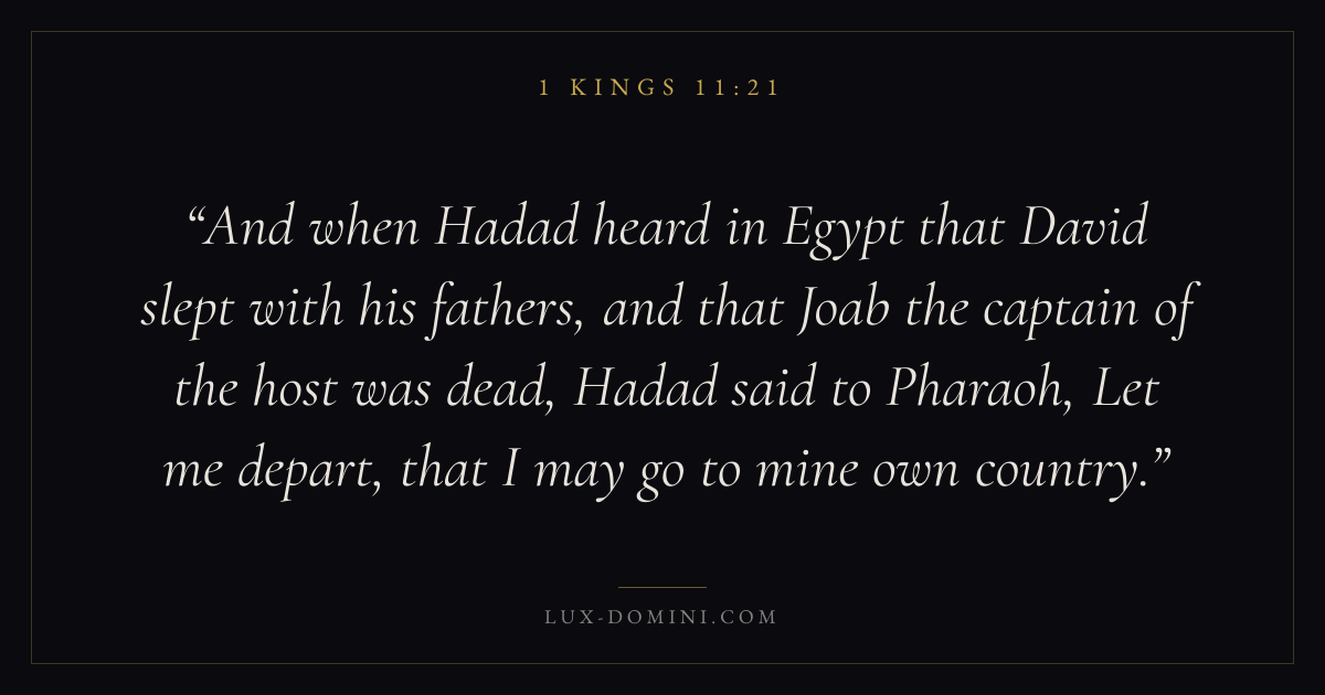 And when Hadad heard in Egypt that David slept with his fathers, and that Joab the captain of the host was dead, Hadad said to Pharaoh, Let me depart, that I may go to mine own country.