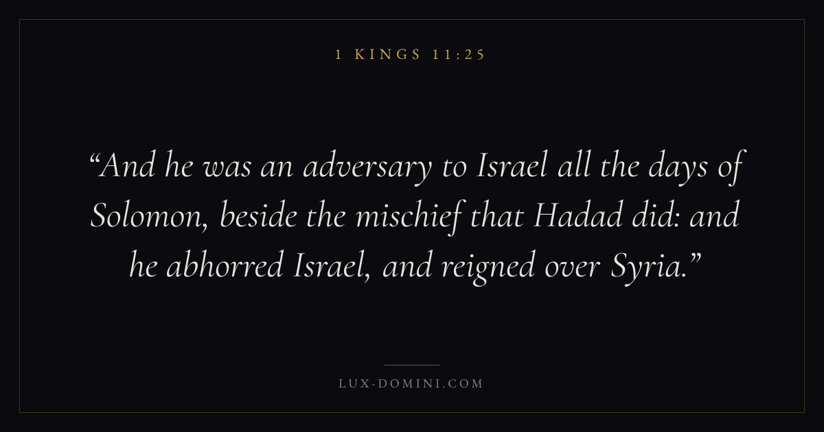 And he was an adversary to Israel all the days of Solomon, beside the mischief that Hadad did: and he abhorred Israel, and reigned over Syria.