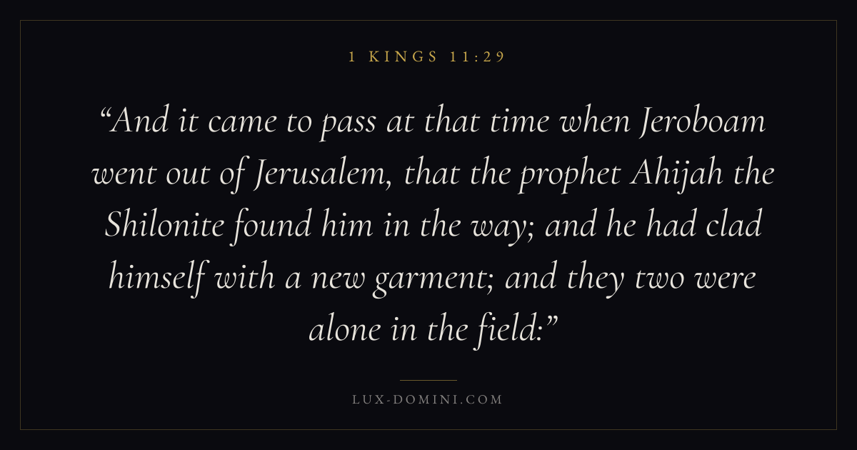 And it came to pass at that time when Jeroboam went out of Jerusalem, that the prophet Ahijah the Shilonite found him in the way; and he had clad himself with a new garment; and they two were alone in the field: