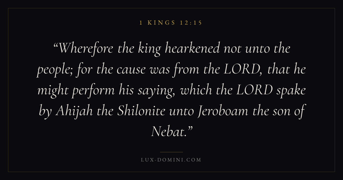 Wherefore the king hearkened not unto the people; for the cause was from the LORD, that he might perform his saying, which the LORD spake by Ahijah the Shilonite unto Jeroboam the son of Nebat.