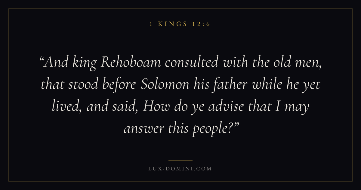 And king Rehoboam consulted with the old men, that stood before Solomon his father while he yet lived, and said, How do ye advise that I may answer this people?