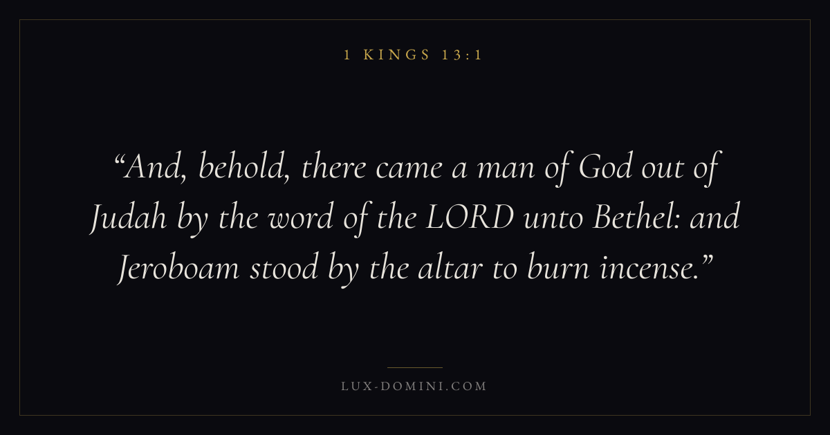 And, behold, there came a man of God out of Judah by the word of the LORD unto Bethel: and Jeroboam stood by the altar to burn incense.