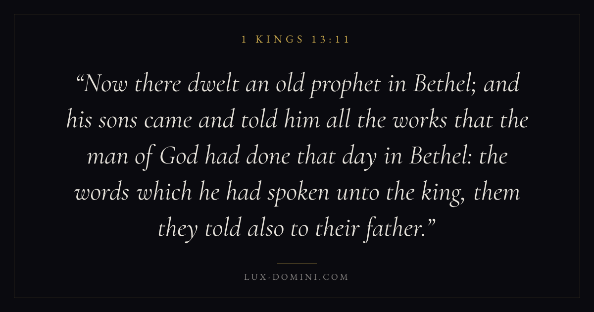 Now there dwelt an old prophet in Bethel; and his sons came and told him all the works that the man of God had done that day in Bethel: the words which he had spoken unto the king, them they told also to their father.