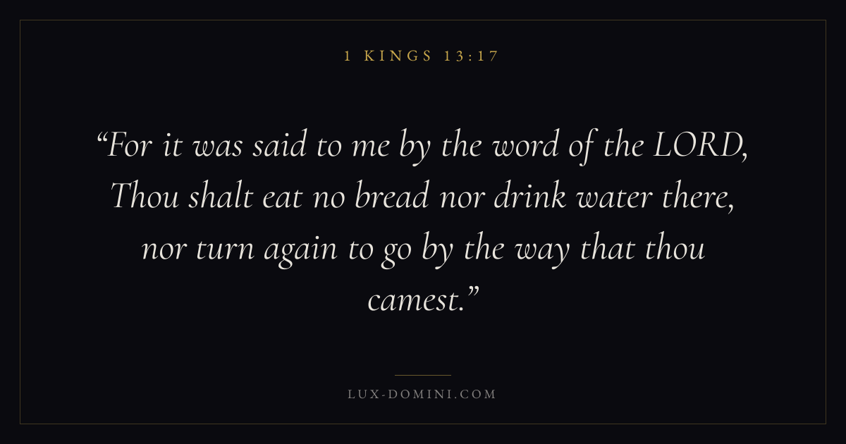 For it was said to me by the word of the LORD, Thou shalt eat no bread nor drink water there, nor turn again to go by the way that thou camest.