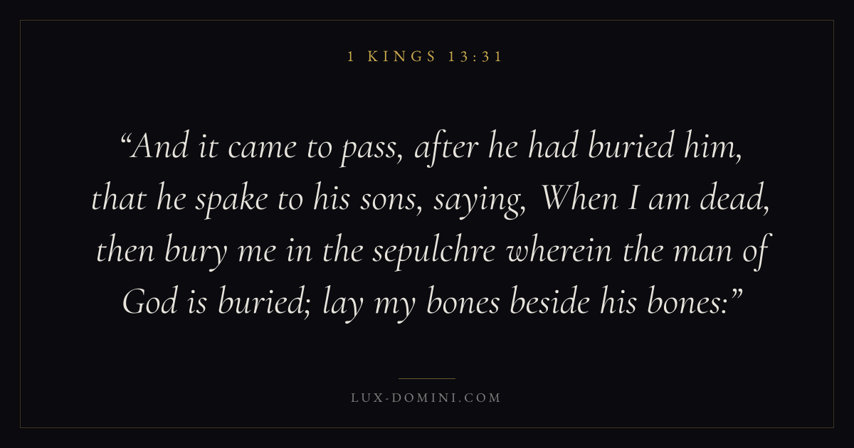 And it came to pass, after he had buried him, that he spake to his sons, saying, When I am dead, then bury me in the sepulchre wherein the man of God is buried; lay my bones beside his bones: