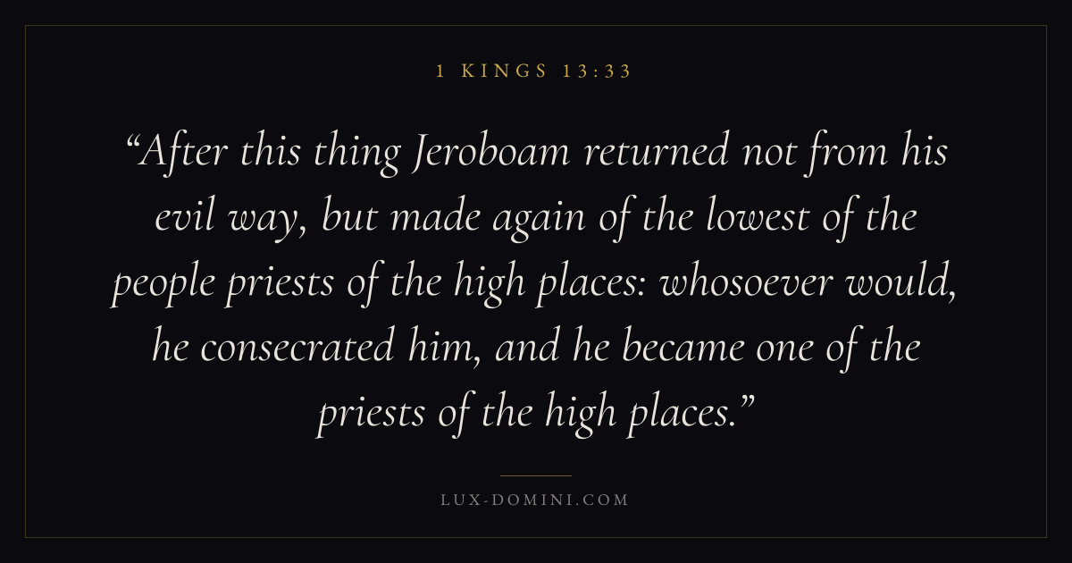 After this thing Jeroboam returned not from his evil way, but made again of the lowest of the people priests of the high places: whosoever would, he consecrated him, and he became one of the priests of the high places.