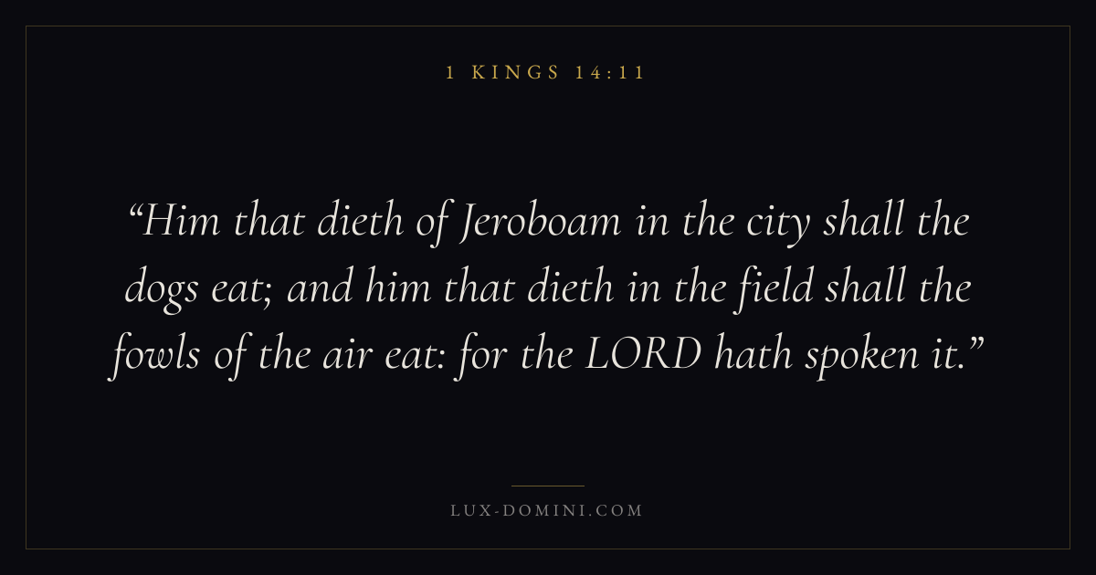 Him that dieth of Jeroboam in the city shall the dogs eat; and him that dieth in the field shall the fowls of the air eat: for the LORD hath spoken it.