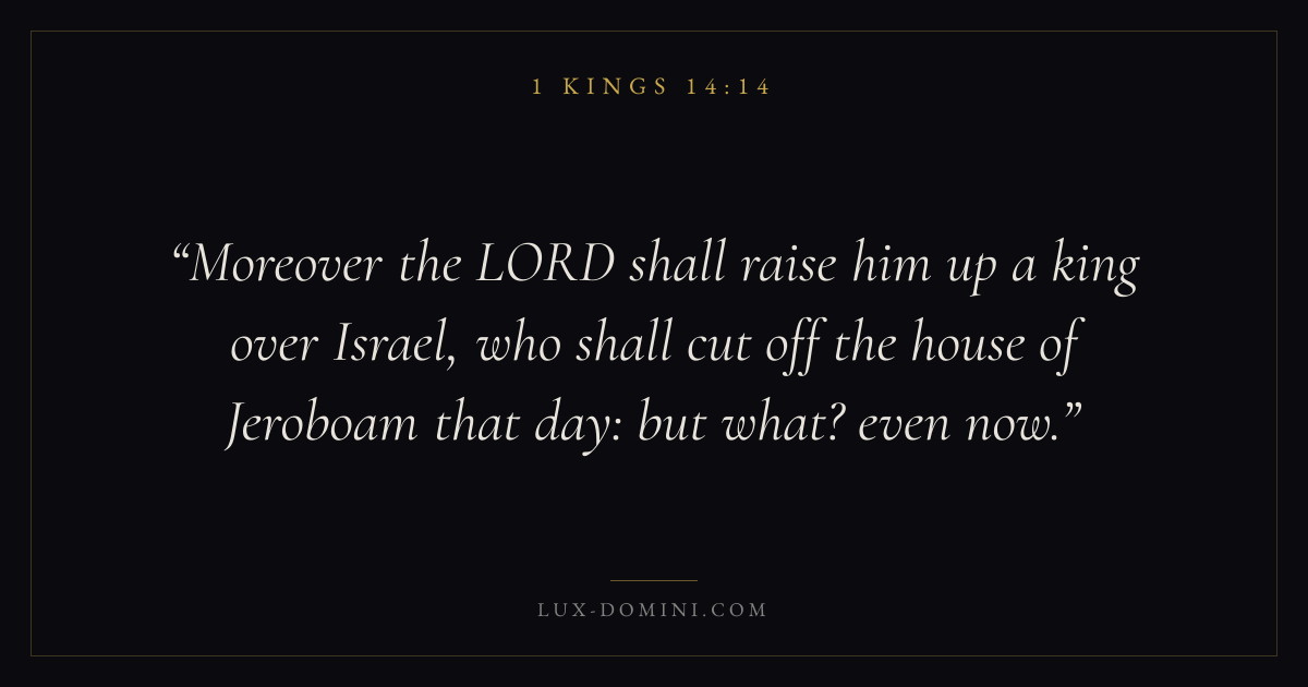 Moreover the LORD shall raise him up a king over Israel, who shall cut off the house of Jeroboam that day: but what? even now.