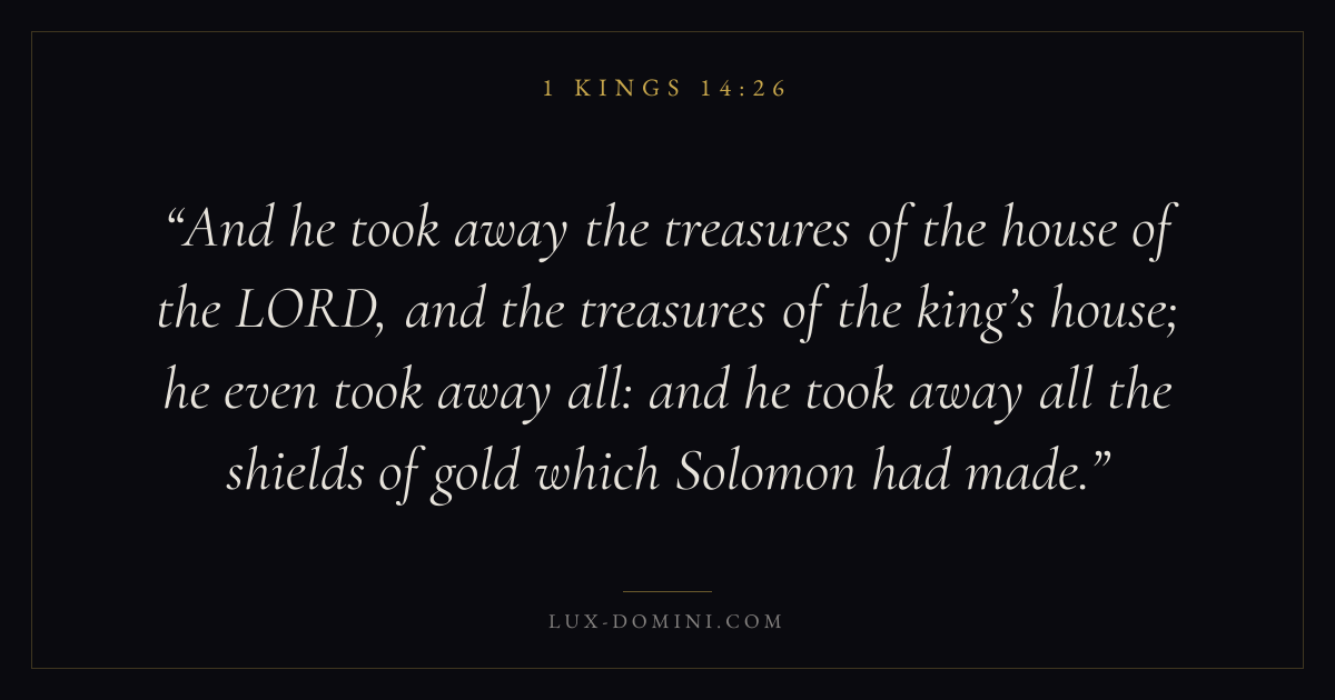 And he took away the treasures of the house of the LORD, and the treasures of the king’s house; he even took away all: and he took away all the shields of gold which Solomon had made.
