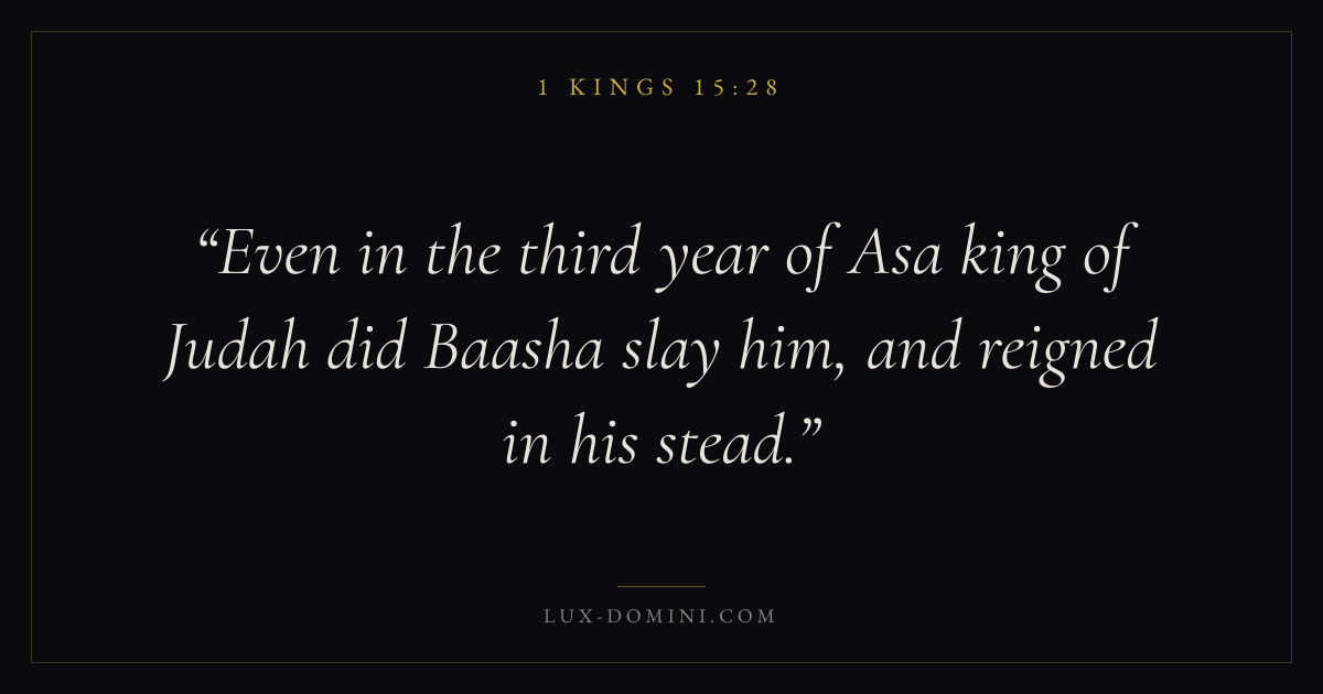 Even in the third year of Asa king of Judah did Baasha slay him, and reigned in his stead.