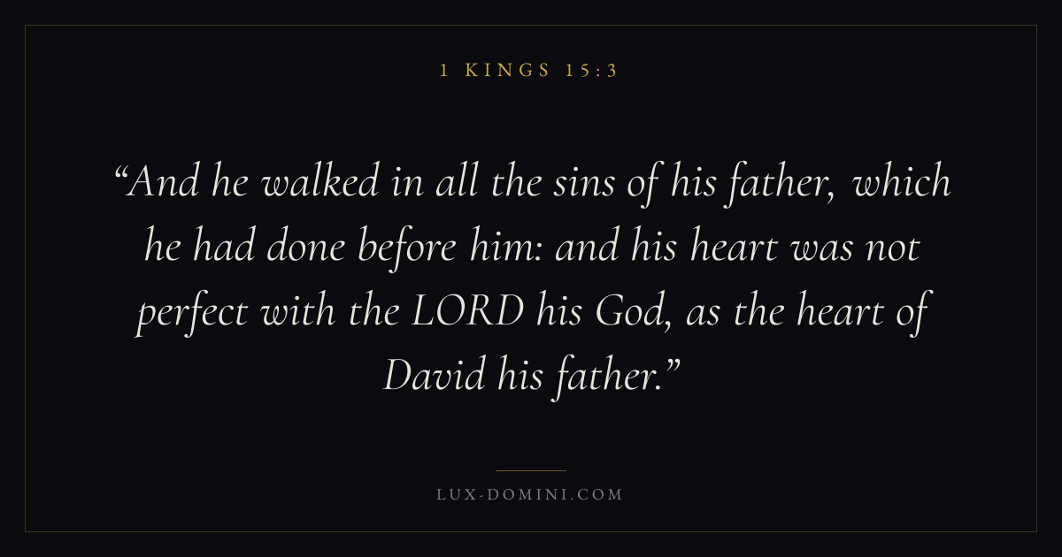 And he walked in all the sins of his father, which he had done before him: and his heart was not perfect with the LORD his God, as the heart of David his father.