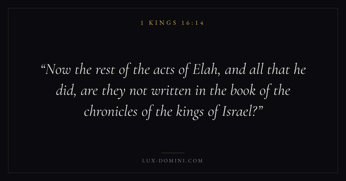 Now the rest of the acts of Elah, and all that he did, are they not written in the book of the chronicles of the kings of Israel?
