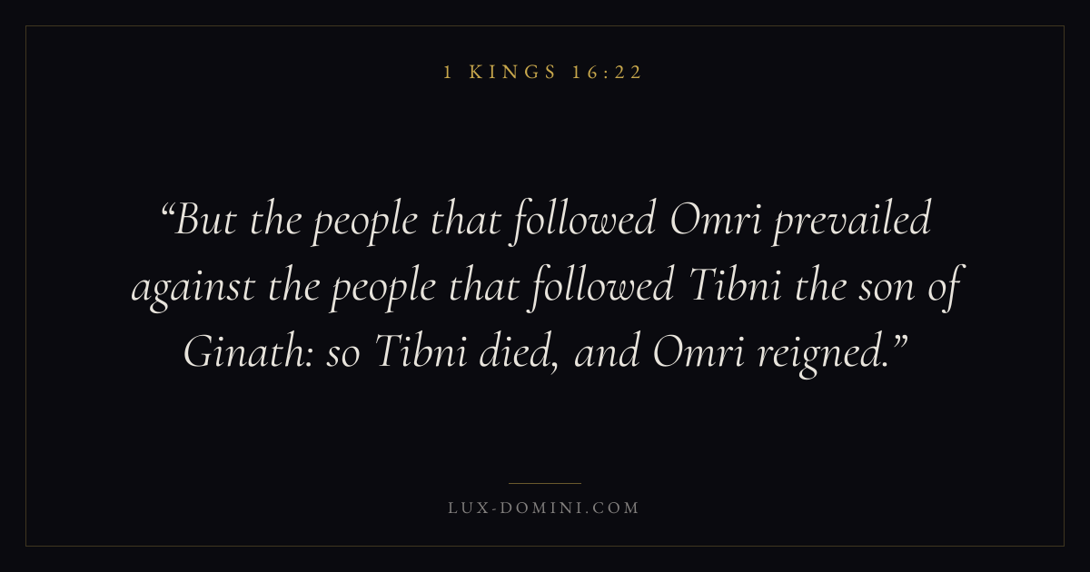 But the people that followed Omri prevailed against the people that followed Tibni the son of Ginath: so Tibni died, and Omri reigned.