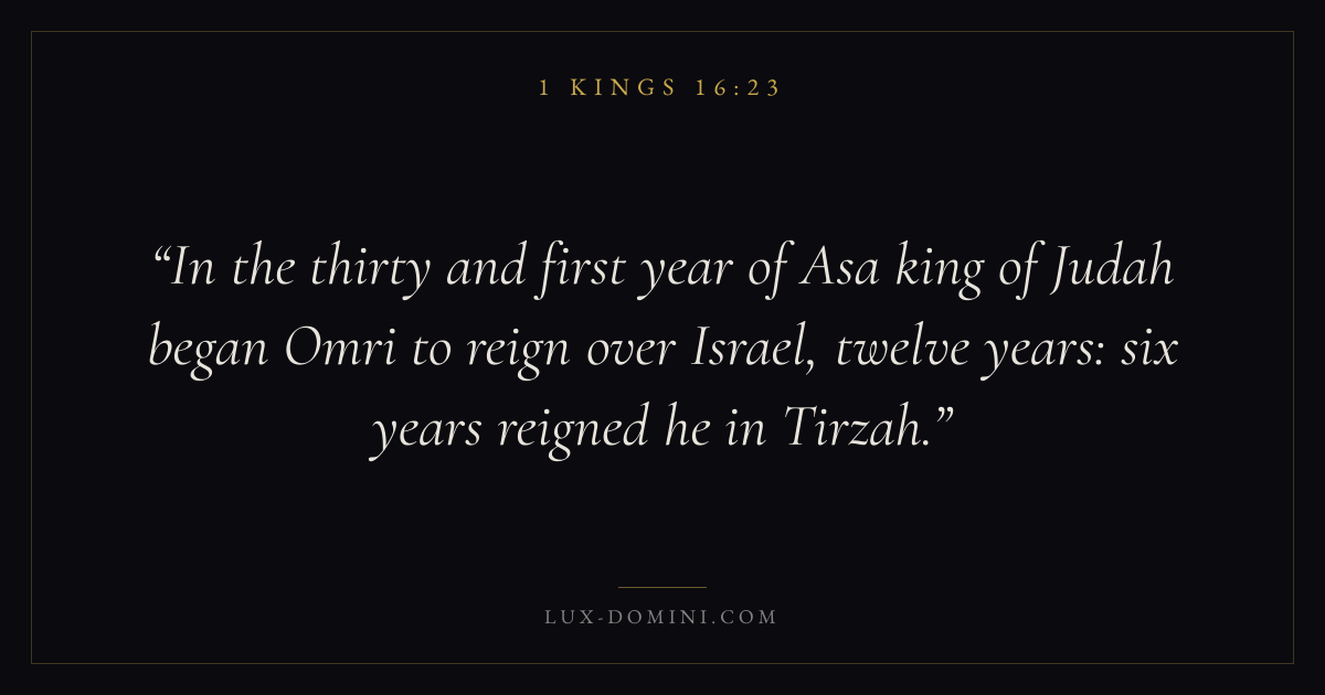 In the thirty and first year of Asa king of Judah began Omri to reign over Israel, twelve years: six years reigned he in Tirzah.