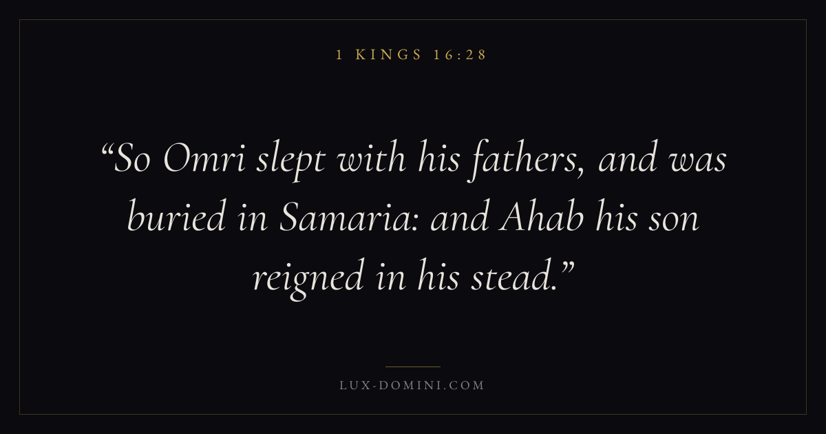 So Omri slept with his fathers, and was buried in Samaria: and Ahab his son reigned in his stead.
