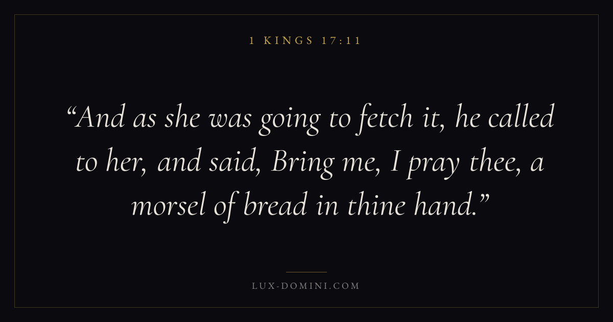 And as she was going to fetch it, he called to her, and said, Bring me, I pray thee, a morsel of bread in thine hand.