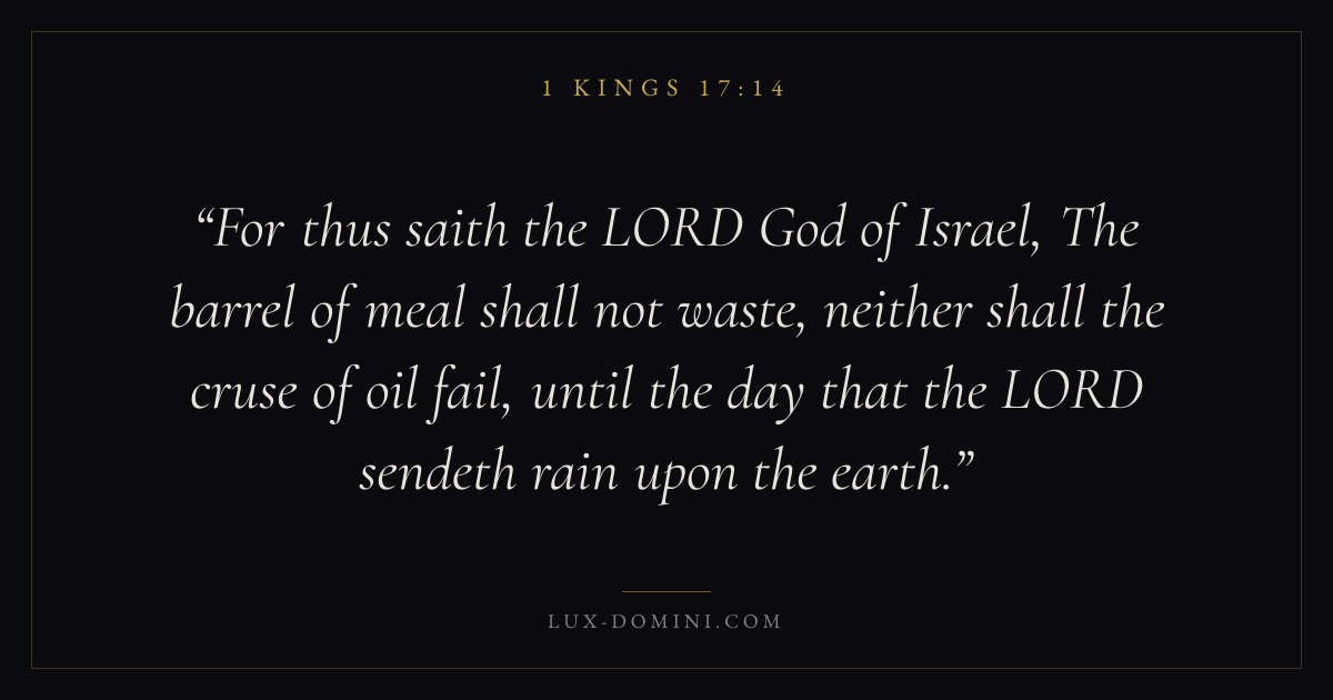 For thus saith the LORD God of Israel, The barrel of meal shall not waste, neither shall the cruse of oil fail, until the day that the LORD sendeth rain upon the earth.