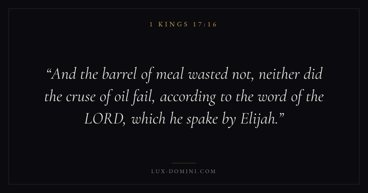 And the barrel of meal wasted not, neither did the cruse of oil fail, according to the word of the LORD, which he spake by Elijah.