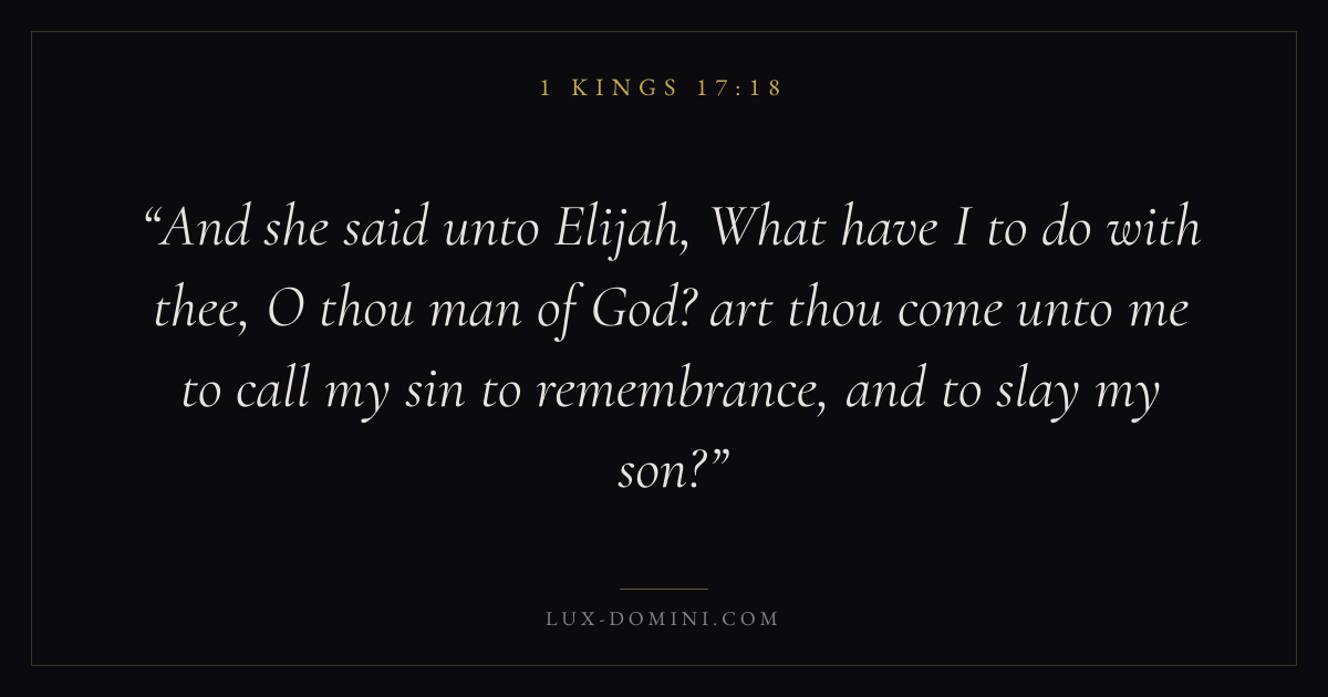 And she said unto Elijah, What have I to do with thee, O thou man of God? art thou come unto me to call my sin to remembrance, and to slay my son?