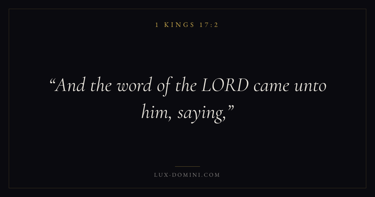 Books / 1 Kings / Chapter 17 / Verse 2 ← 1 Kings 17:1 1 Kings 17:2 1 Kings 17:3 → And the word of the LORD came unto him, saying, Download verse card Share on Twitter Share on Facebook Pin it ✦ Key themes WisdomJustice and mercyTruthTemple Read with 1 Kings 17:11 Kings 17:3Proverbs 1:7James 1:5 Related topics Bible verses about wisdomBible verses about justice and mercyBible verses about truth ✦ 1 Kings Chapter 17 verses V. 1 V. 2 V. 3 V. 4 V. 5 V. 6 V. 7 V. 8 V. 9 V. 10 V. 11 V. 12 V. 13 V. 14 V. 15 V. 16 V. 17 V. 18 V. 19 V. 20 V. 21 V. 22 V. 23 V. 24