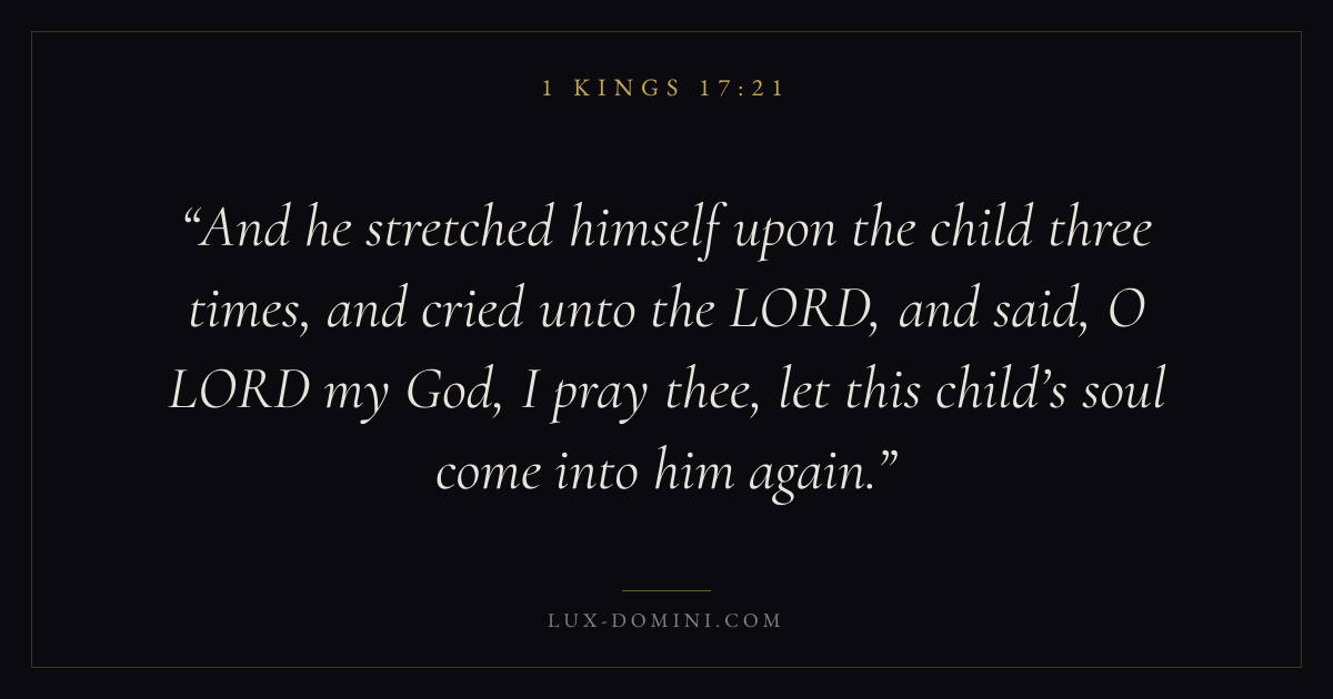 And he stretched himself upon the child three times, and cried unto the LORD, and said, O LORD my God, I pray thee, let this child’s soul come into him again.