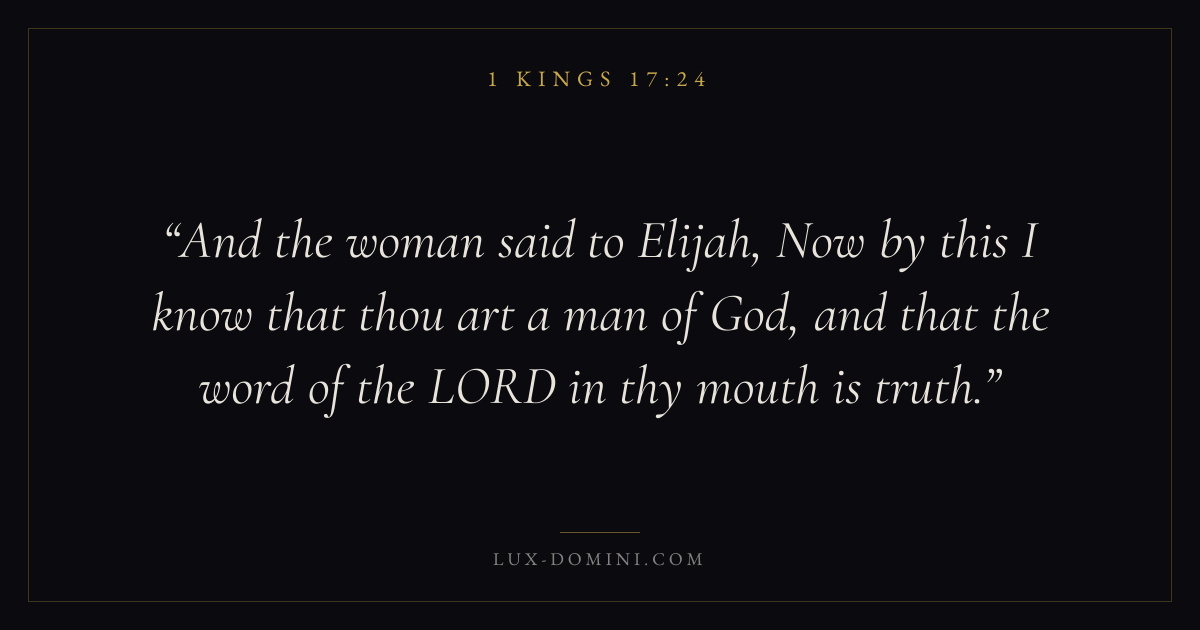 And the woman said to Elijah, Now by this I know that thou art a man of God, and that the word of the LORD in thy mouth is truth.