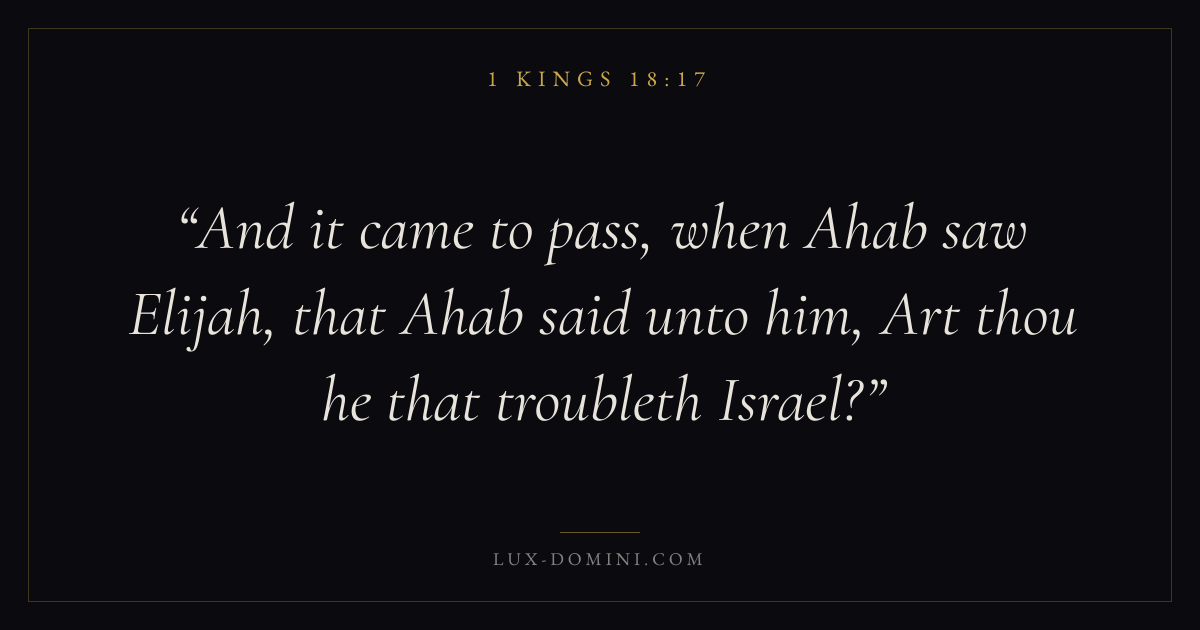 And it came to pass, when Ahab saw Elijah, that Ahab said unto him, Art thou he that troubleth Israel?